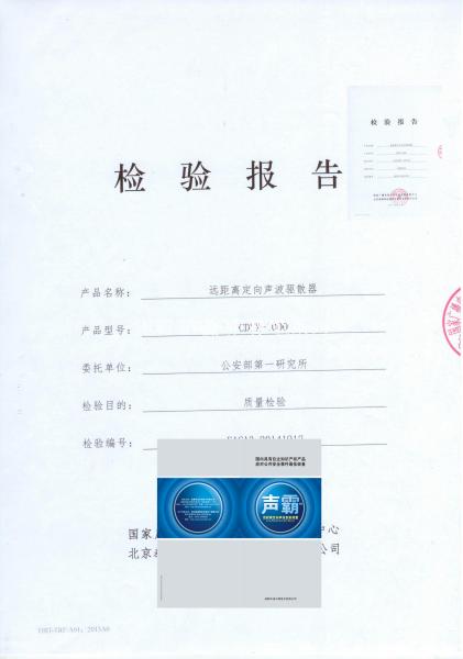 我公司参与《公安部强声驱散器技术规范》的制定工作,系列产品成功通过相关检测,技术指标完胜国外同类产品,国内领先。 |