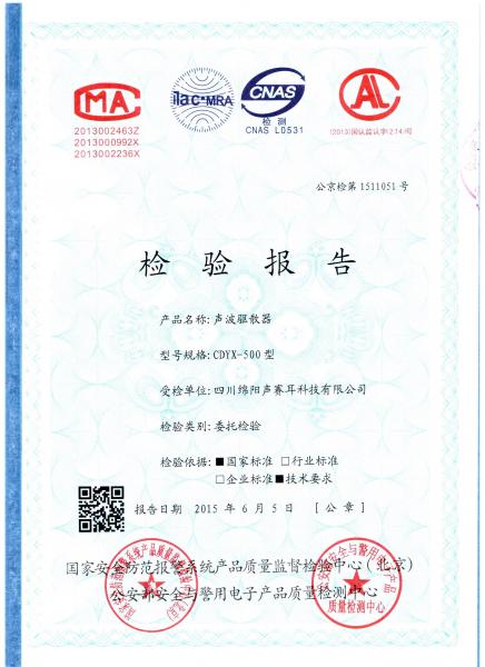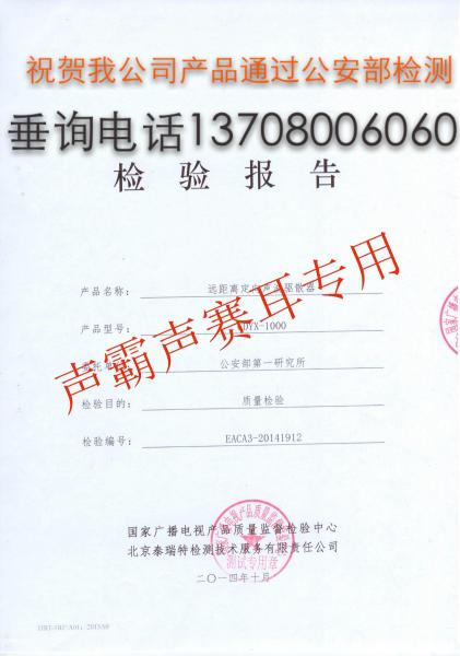 声波驱散器系列通过公安部检测全部达标或超标